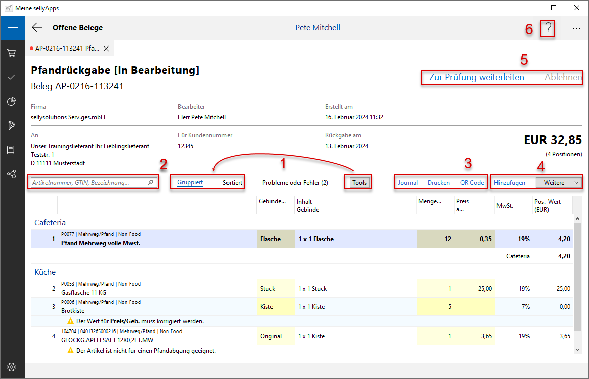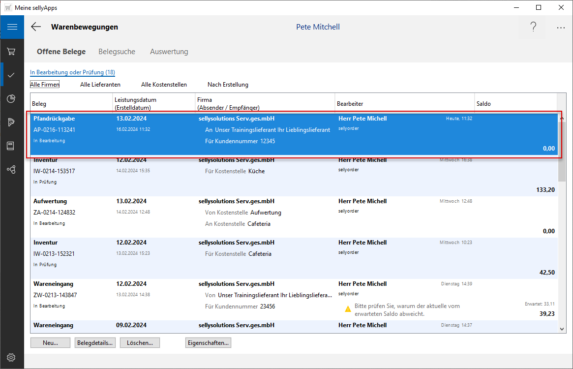In unserem Beispiel ist jetzt ein Pfandrückgabebeleg erzeugt worden.