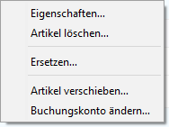 Kontextmenü, welches Sie mit Klick der rechten Maustaste auf eine Belegposition erhalten. So öffnen Sie über den Eintrag