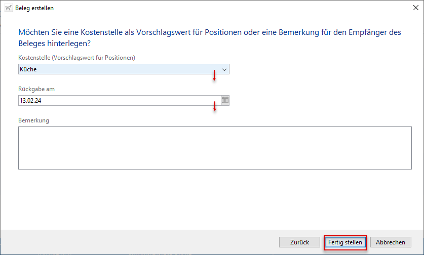 Zusätzlich kann auch hier eine Bemerkung hinterlegt werden.