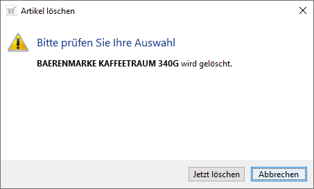 Haben Sie einen Artikel in Ihren Pfandzugangsbeleg übernommen, der nicht zu diesem Beleg oder nicht zu einem Pfandsortiment gehört und somit kein Pfandartikel ist, muss dieser aus dem Beleg entfernt werden.