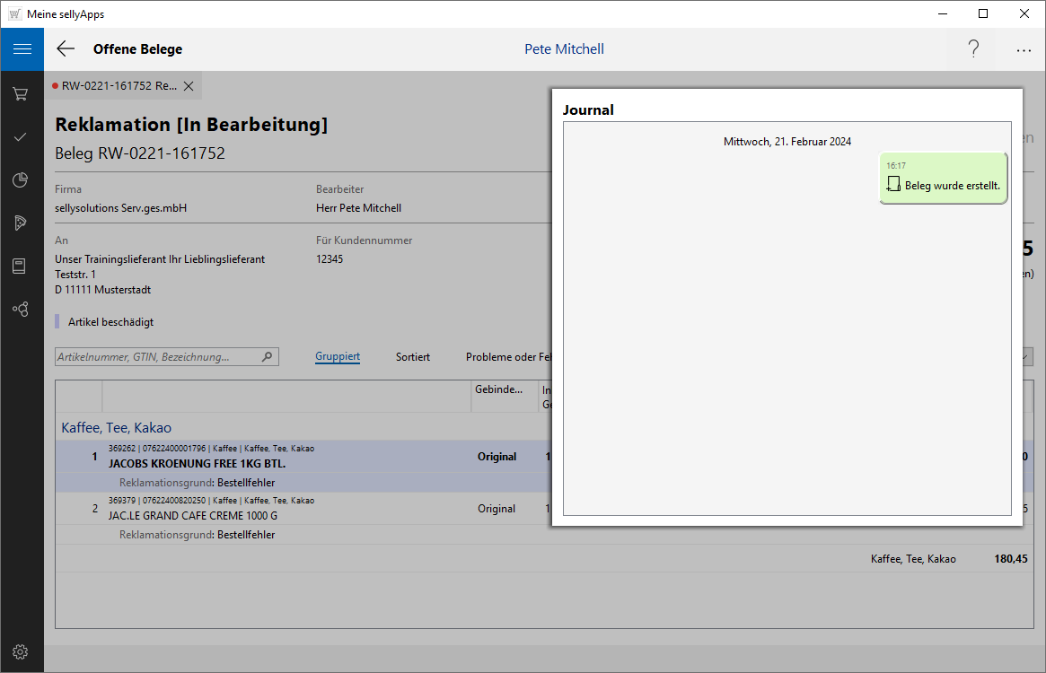 In dieser Ansicht werden Ihnen die wichtigen Daten des Belegweges