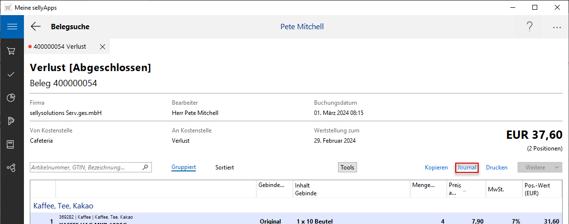 Im Bildbeispiel ist der Verlustbeleg im Status