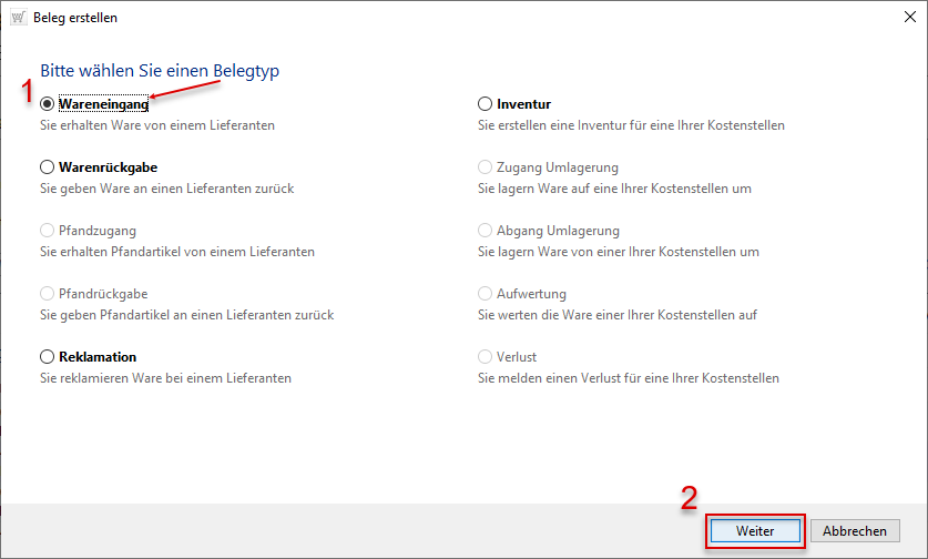 kommen Sie zum nächsten Schritt der Belegerstellung.