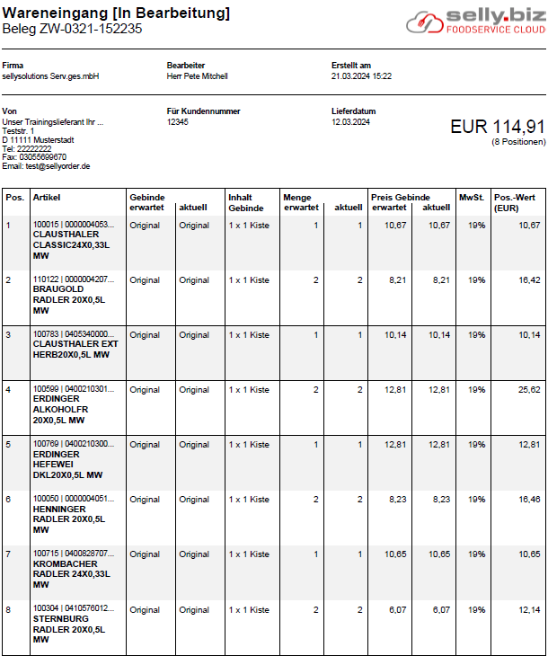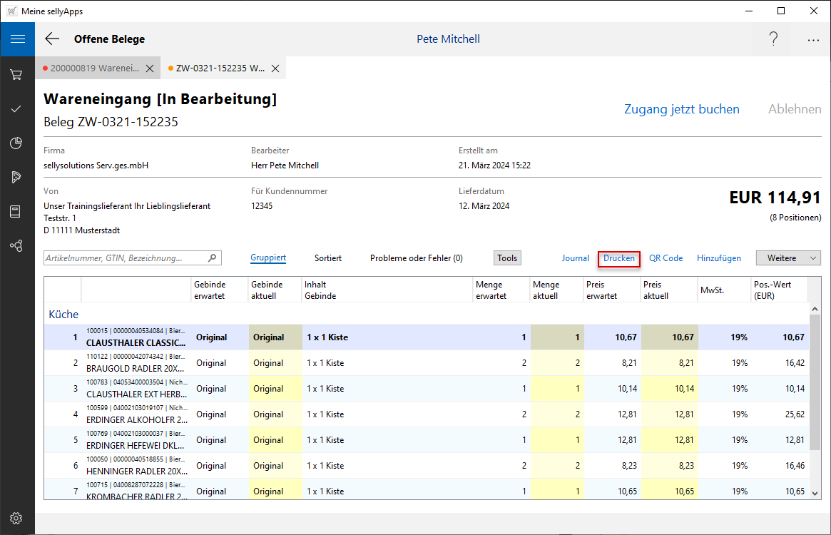 Jeden Beleg Ihrer Warenbewegungen können Sie ausdrucken. Sie nutzen dazu die Druckfunktion in der Detailansicht. Somit erhalten Sie Ihren