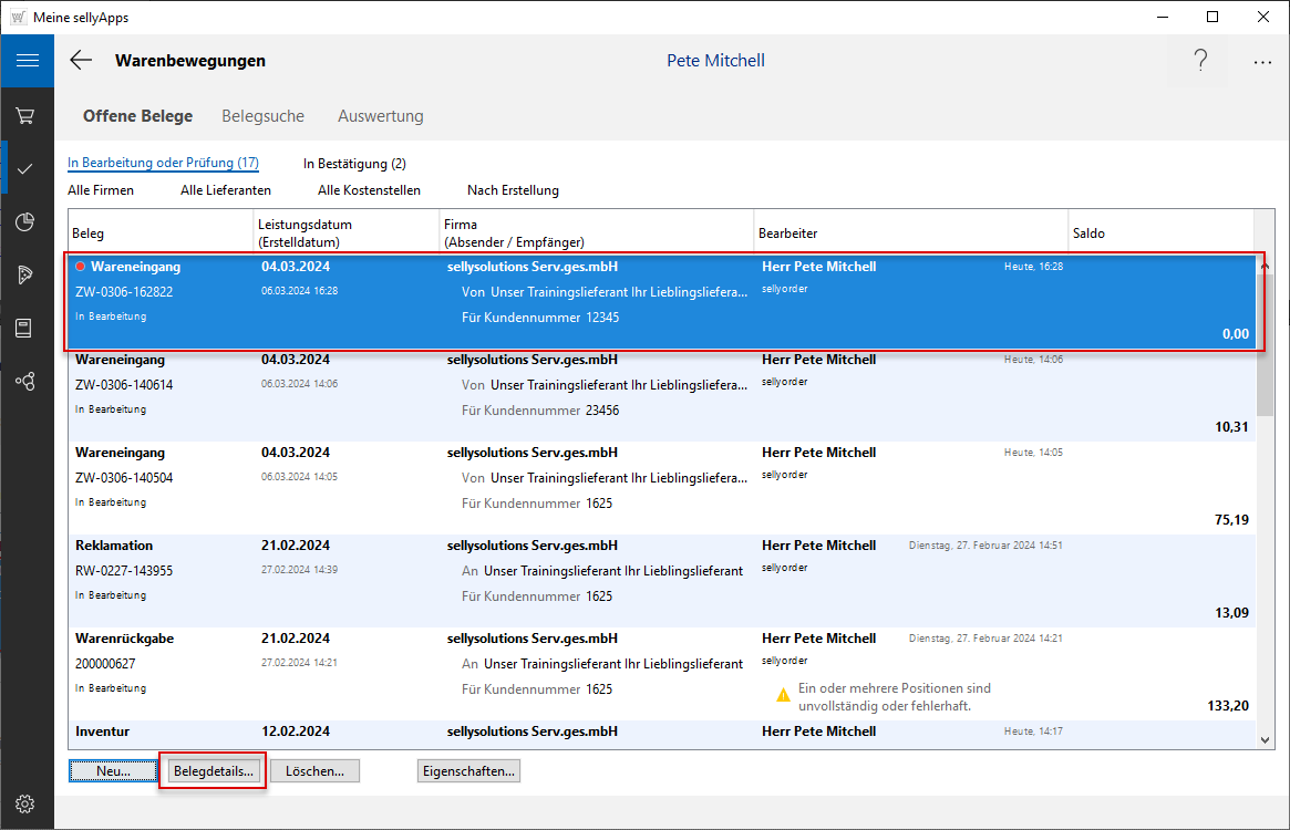 Doppelklick auf die Belegzeile, öffnen Sie die Belegdetails.