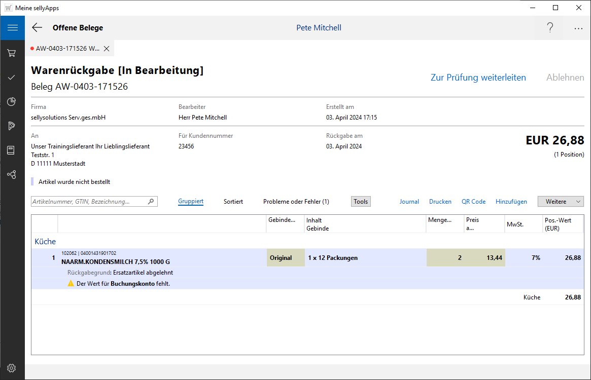 Mit Eingabe der Rückgabemenge (s. Markierung
