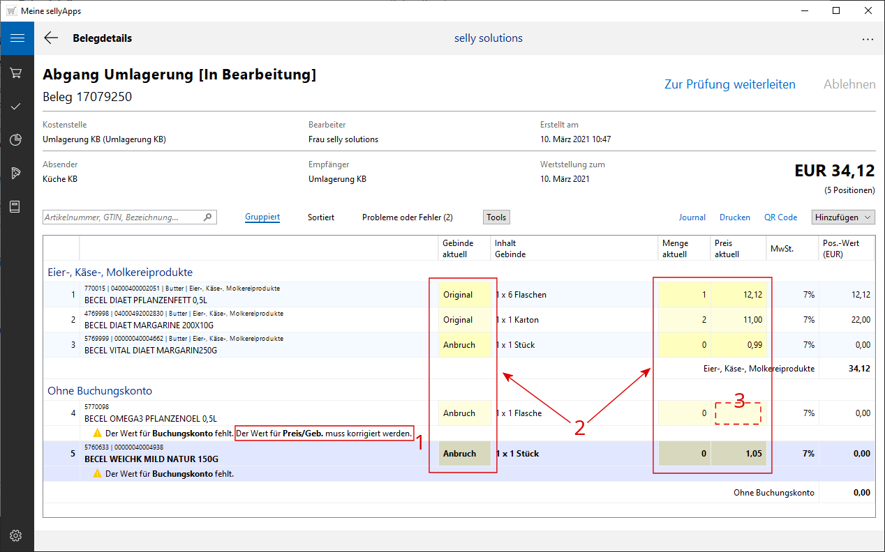 hinsichtlich der Gebinde-, Mengen- oder Preisangabe nicht korrekt bzw. unvollständig, finden Sie bereits an der Position einen entsprechenden