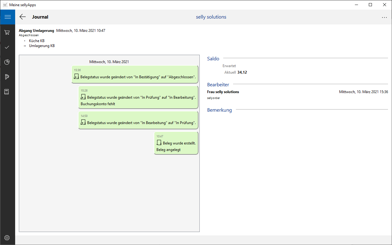 Es werden jeweils die Belegübergänge von Bearbeitung zur