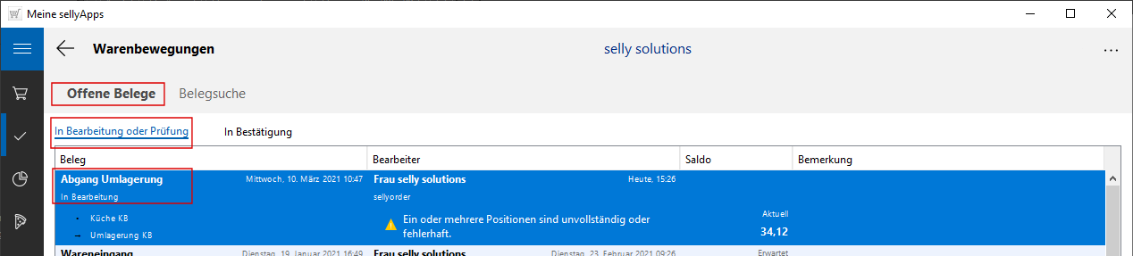 online - Hilfe sellyApps - Warenbewegungen