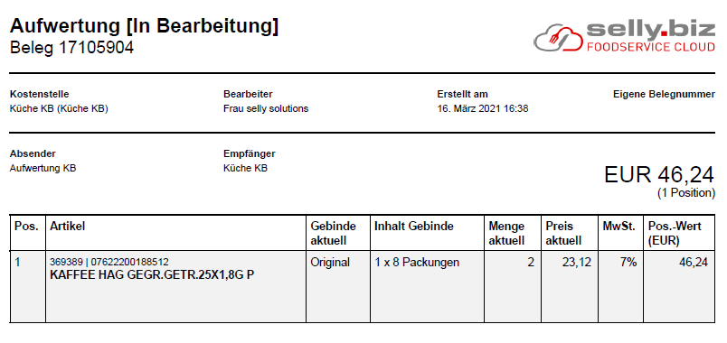 Alle Ihre erzeugten Belege über Warenbewegungen