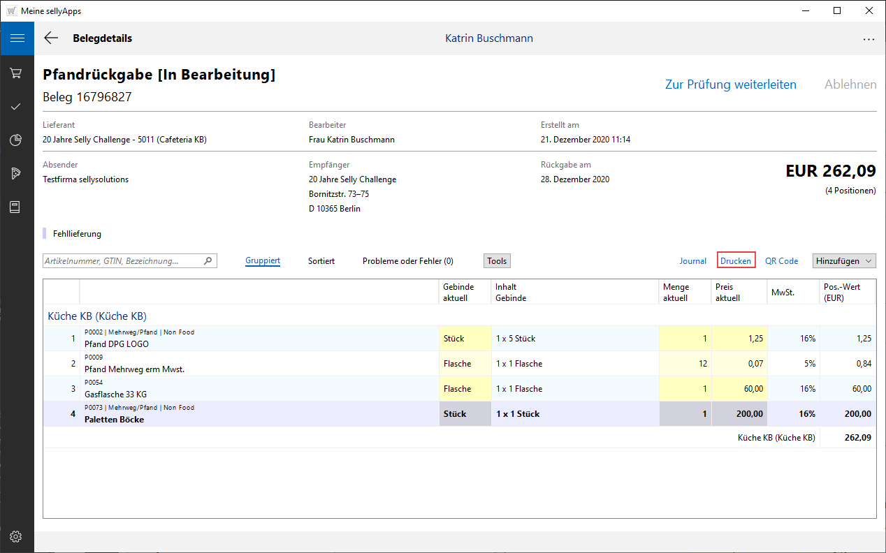 In dieser Ansicht können Sie Ihren Beleg für eine Pfandrückgabe ausdrucken.