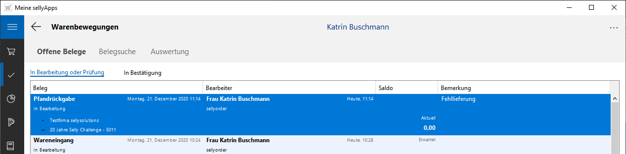 In unserem Beispiel ist jetzt ein Pfandrückgabebeleg erzeugt worden. Mit einem Doppelklick auf die Belegzeile oder Klick auf die gleichnamige Schaltfläche öffnen Sie die Belegdetails (s. Bild rechts).