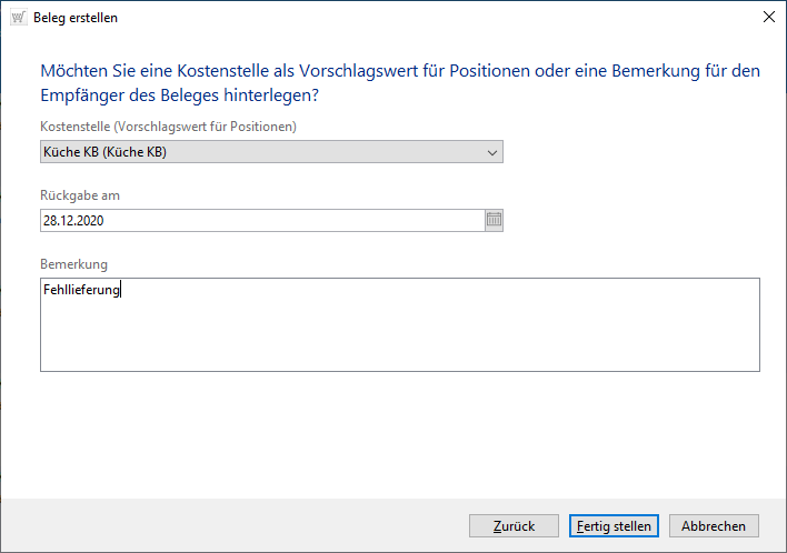 Zusätzlich kann auch hier eine Bemerkung hinterlegt werden.