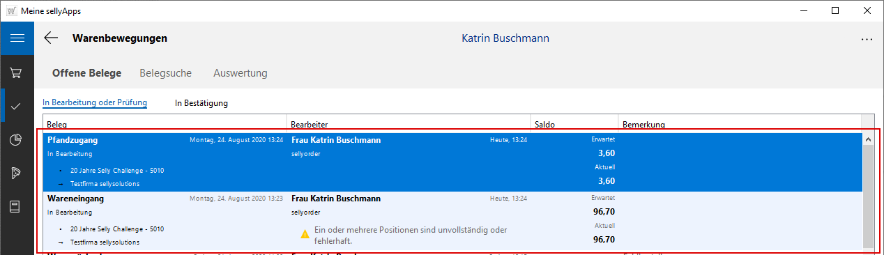 In der Detailansicht des Pfandzugangsbeleges sehen Sie die, aus dem elektronischen Lieferschein, übernommene Positionen und die Belegkopfdaten.