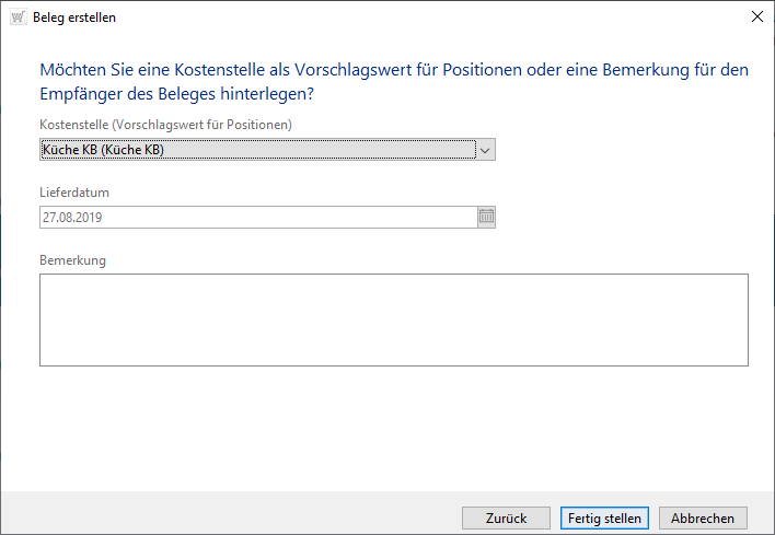 Zusätzlich kann auch hier eine Bemerkung hinterlegt