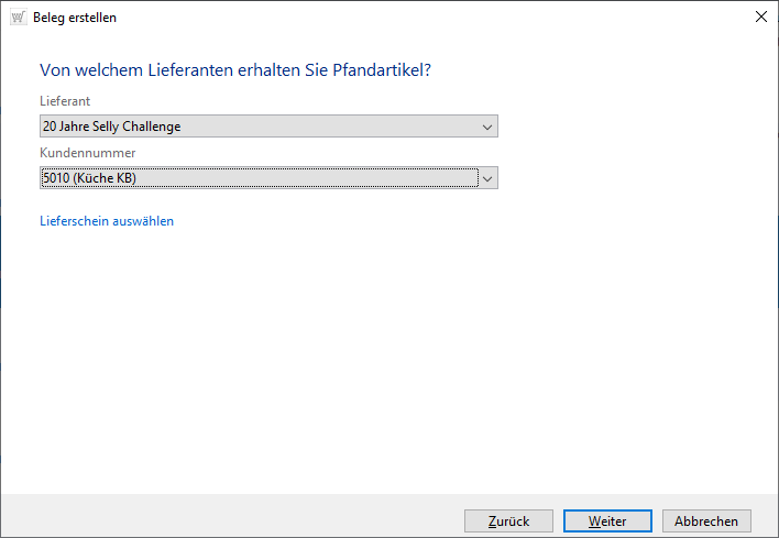 Verfügung, ist der Auswahllink Lieferschein wählen