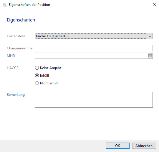 Bei den Positionseigenschaften handelt es sich z. B. um die Angabe der Kostenstelle.