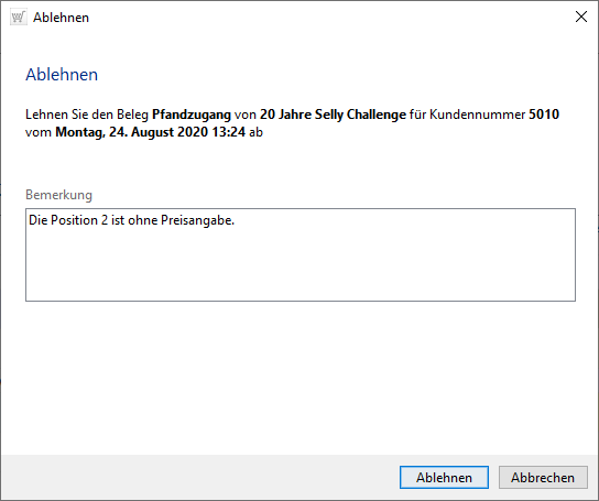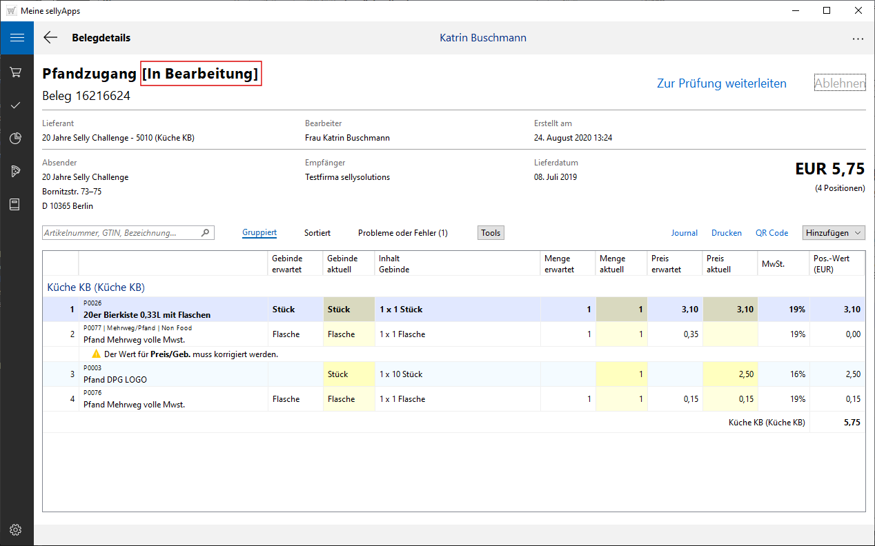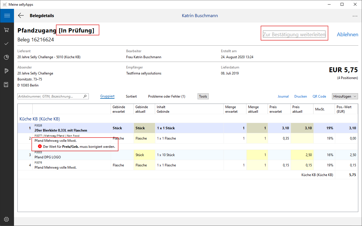 Ist der Beleg nicht in allen Positionen korrekt, können Sie diesen