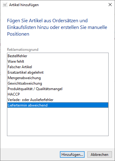Nachfolgend bestimmen Sie den Reklamationsgrund (s. Bild rechts).