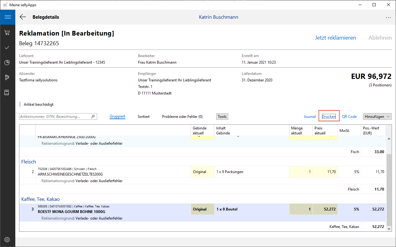 Sie wählen in der Detailansicht den Funktionslink Drucken