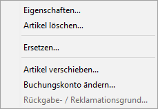 Handelt es sich um einen Reklamations- oder Rückgabebeleg, können Sie über den letzten Eintrag im Mausmenü den
