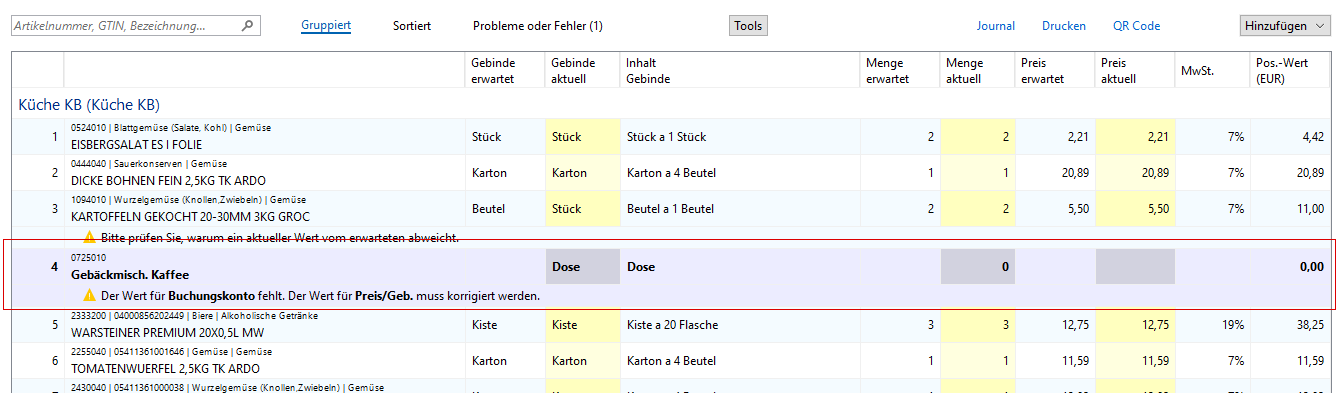 Um Artikel in Ihren Beleg zu übernehmen, wählen Sie diese aus: