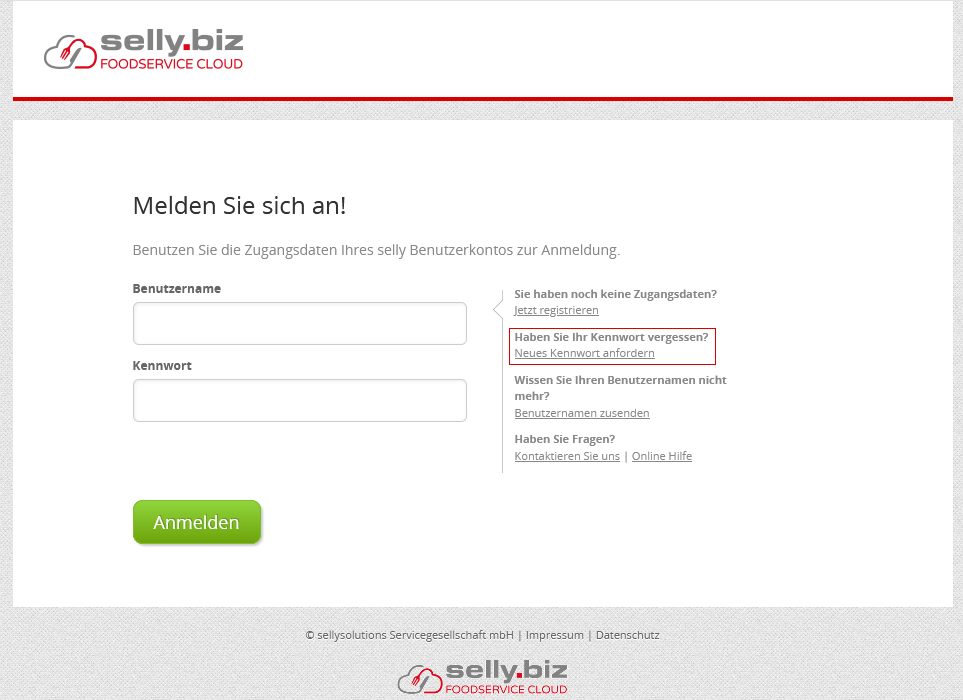 Im Anmeldedialog nutzen Sie den Link Neues Kennwort anfordern und geben in der neuen Maske Ihren Benutzernamen und die