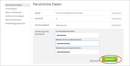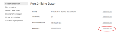 öffnen Sie den Dialog Persönliche Daten und können nun Ihr Kennwort (Passwort) bearbeiten und ändern.