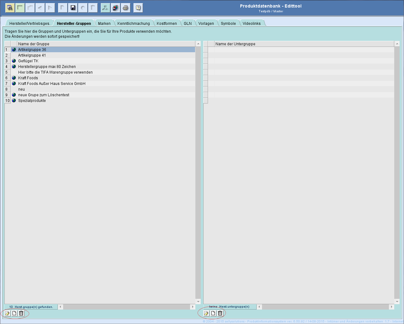 neuen bzw. geänderten Hersteller-Gruppen und -Untergruppen über das Disketten-Symbol