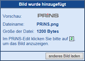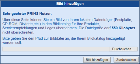 Mit [Bild hinzufügen] starten Sie den Vorgang und erhalten nebenstehende Meldung.