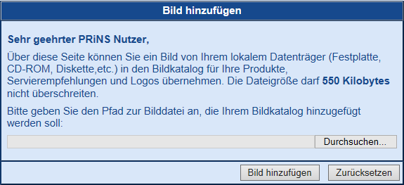 Mit Klick auf [Bild…] erhalten Sie nachfolgenden Dialog und wählen über [Durchsuchen…] Ihr Markenlogo aus.