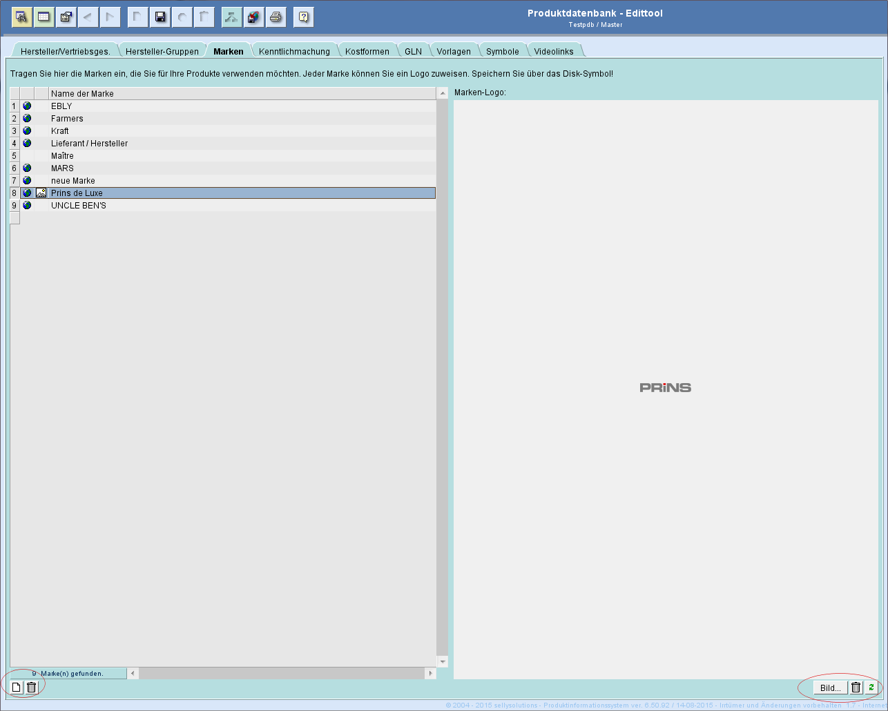 Zur Datenpflege stehen Ihnen die Toolbars