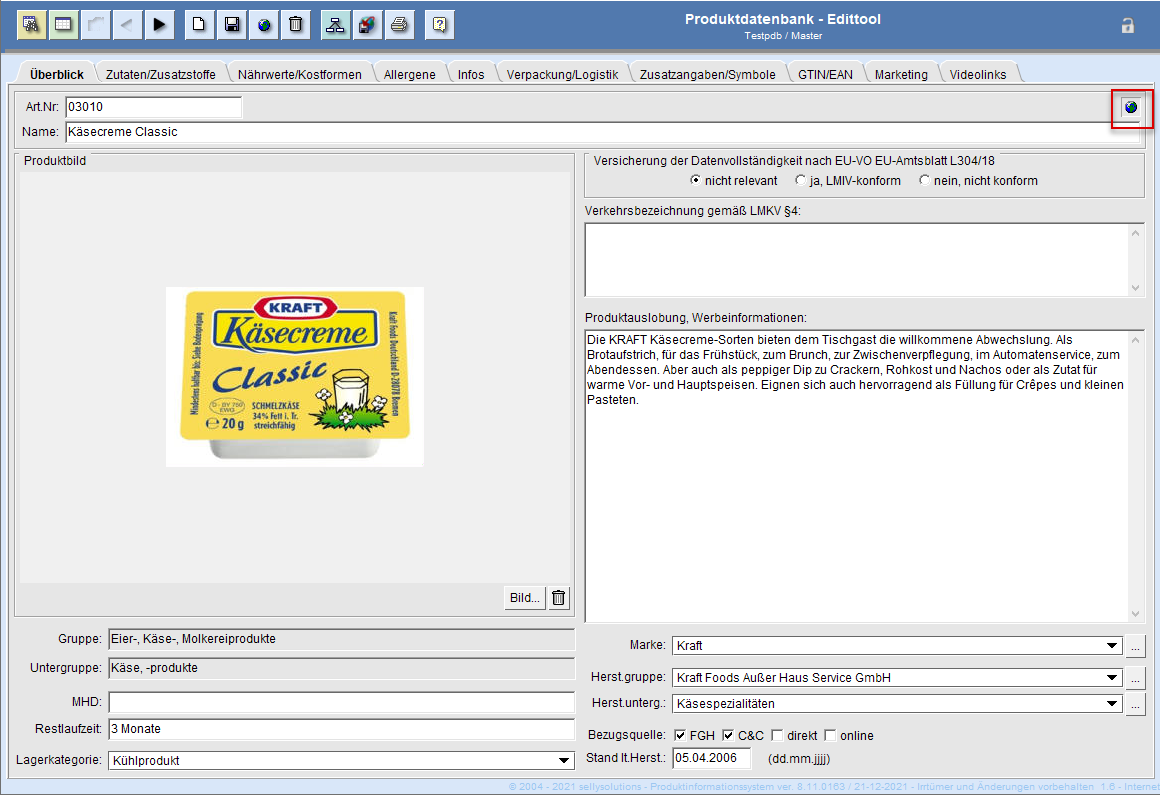 Sie haben somit die Möglichkeit, einen Produktkatalog in Edit vorzubereiten, in der Vorschau zu überprüfen und zu einem definierten Zeitpunkt zu veröffentlichen. Zum Ausdruck des Produktdatenblattes oder der Herstellerinformation, nutzen Sie jeweils das Druckersymbol in der Toolbar.