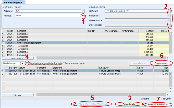 Auswertung nach Zeiträumen, Lieferanten und Warengruppen |