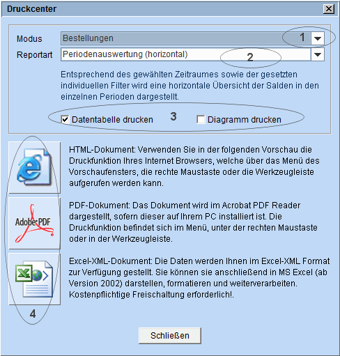 eingestellte Übersicht gedruckt werden soll (Periodenauswertung)