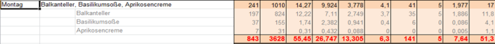 Nährwertberechnung im Excelformat.