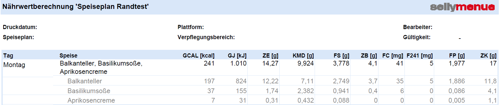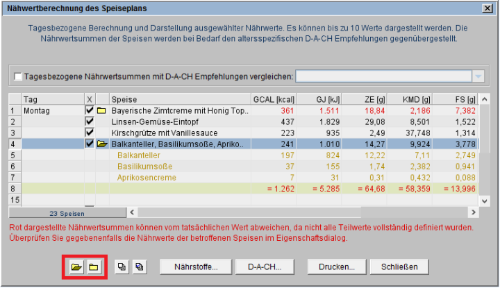 s. dazu auch Nährwertberechnung drucken