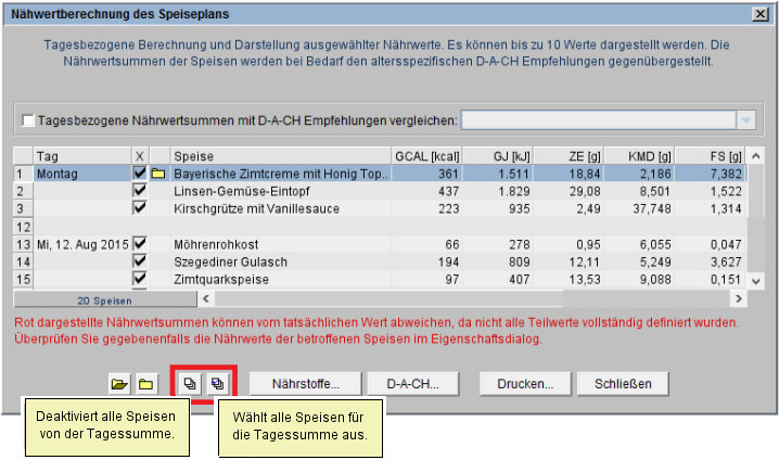 Der Button mit dem Hilfetext Wählt alle Speisen für die Tagessumme aus wählt alle Speisen für die Tagessumme aus.