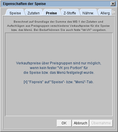 Wenn Preisgruppen nicht möglich sind, wird ein Informationstext anstatt der Preisgruppentabelle eingeblendet.