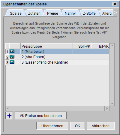 können weitere Preisgruppen hinzugefügt und bearbeitet werden.