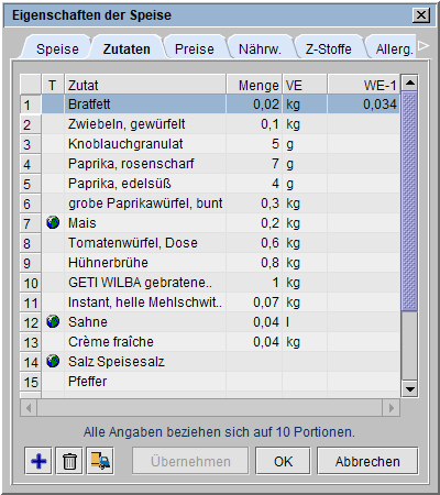 | 'leer' | eigene Zutat des Speiseplaners. |