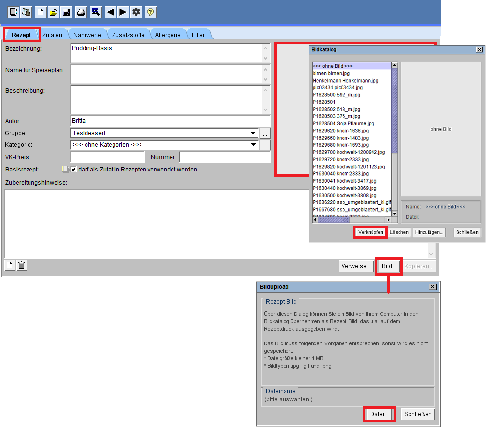 Rezepte mit einem Bild verknüpft werden.