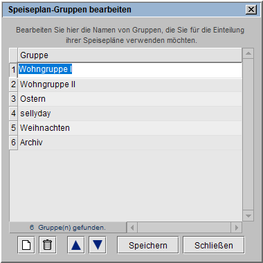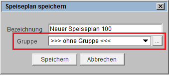 Beim Speichern eines Speiseplanes kann die Gruppe festgelegt werden, in der der Speiseplan abgelegt werden soll.