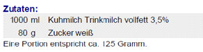 die Anzeige der Zutaten des Basisrezeptes unterhalb des