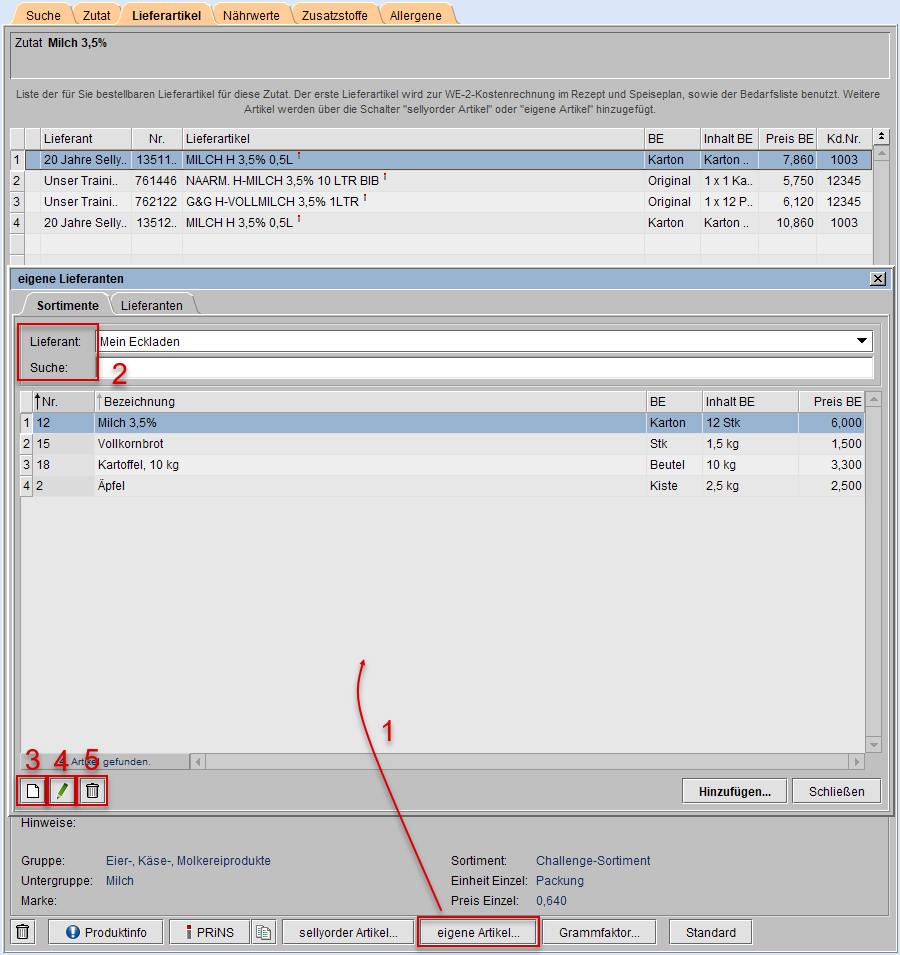 Milch 3,5%. Mit Klick auf die Schalrfläche [eigene