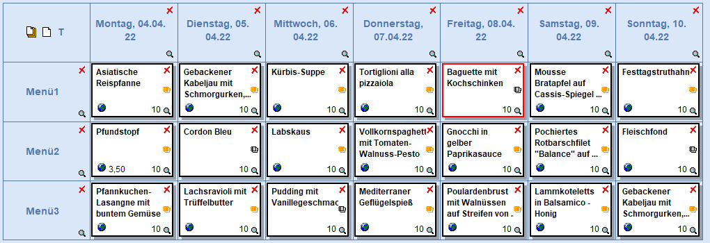 angezeigt. Für die Verwendung in einem Speiseplan werden