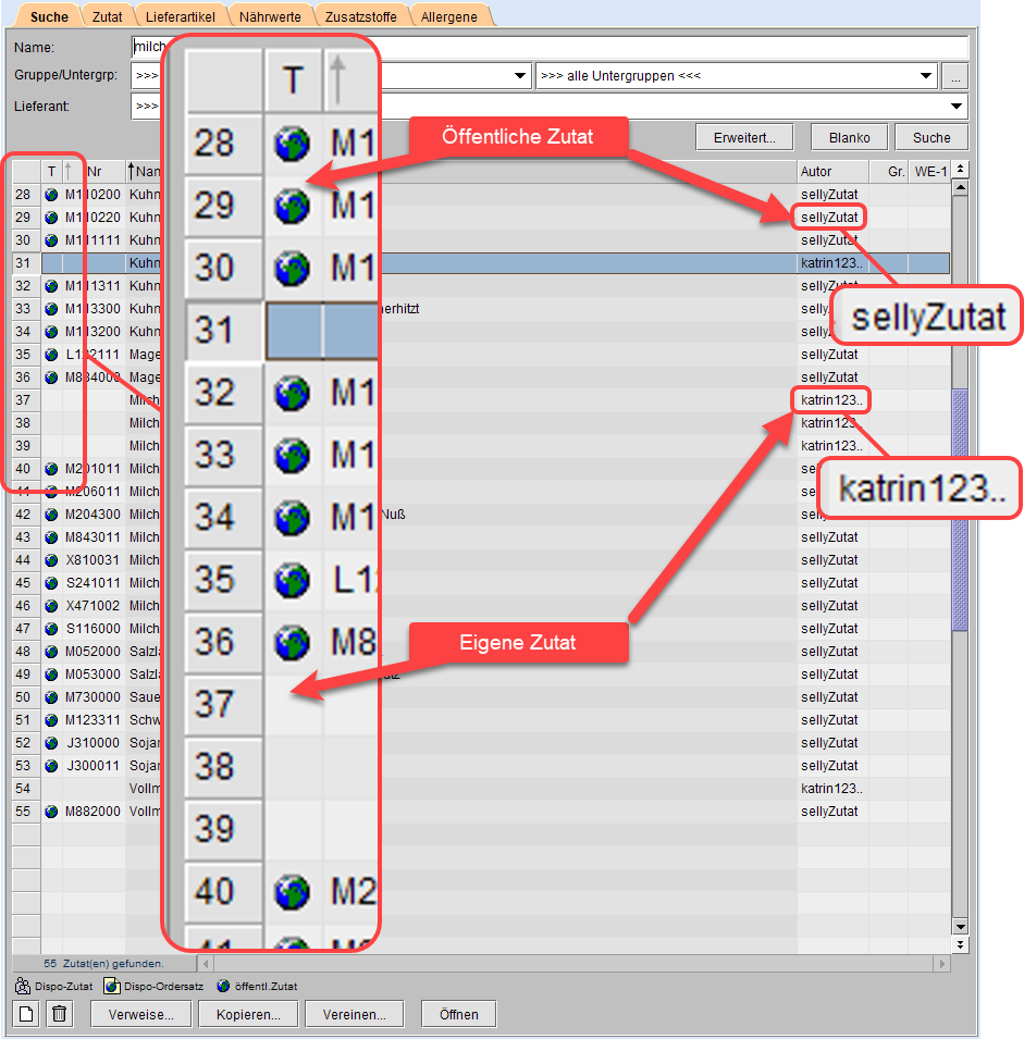 Öffentliche Zutaten werden Ihnen mit dem Zutatenpool sellyzutat im Zutaten-Editor zur Verfügung gestellt. Sie sind durch eine Weltkugel