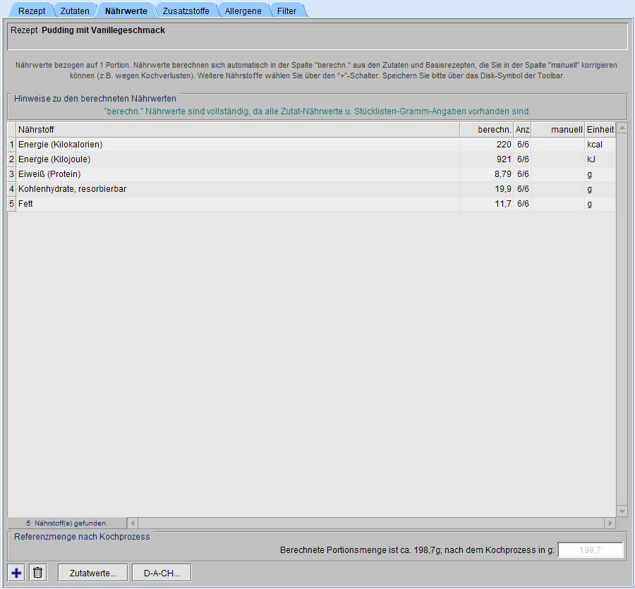 Möchten Sie die Liste der Nährstoffe ändern bzw. erweitern, klicken Sie im Reiter Nährwerte auf den Schaltknopf