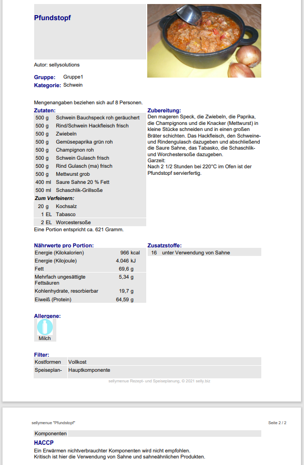 In der Rezeptverwaltung sellymenue erfolgt die Erfassung der benötigten Rezepturen, idealerweise auf der Basis