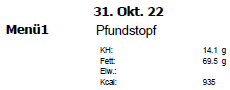 Die Referenzmenge der Speise wird in der Nährwertberechnung gedruckt. Wurde die Referenzmenge nicht manuell geändert, wird die berechnete Portionsmenge ausgedruckt.
